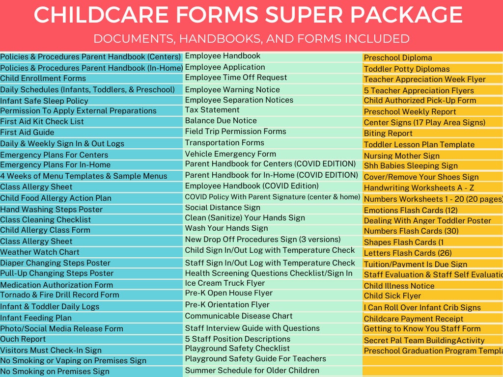 Daycare Forms Super Package 108 Forms Start Your Own Child Etsy Ireland